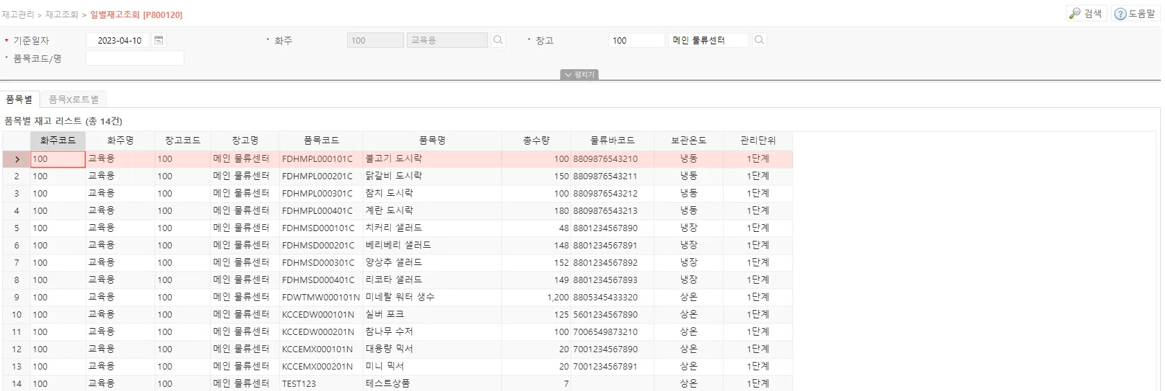 [3] 일별 재고 조회 (재고관리 > 재고조회 > 일별재고조회)