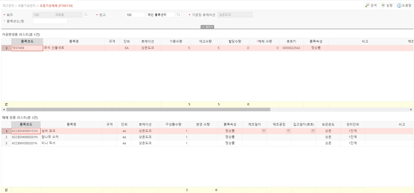 [재고관리 > 유통가공관리 > 유통가공해체]