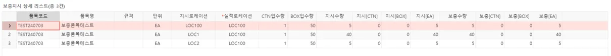 [1] 보충지시 (출고관리 > 출고관리 > 보충지시)