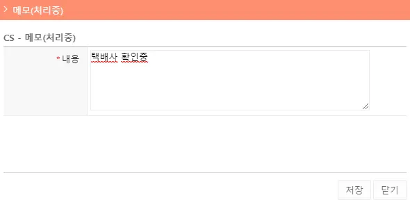 처리중(메모) : 처리중인 CS 관련 메모를 입력합니다.