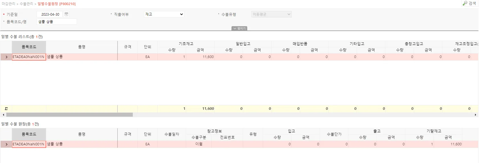 [재고확장관리 > 재고수불관리 > 일별수불원장]