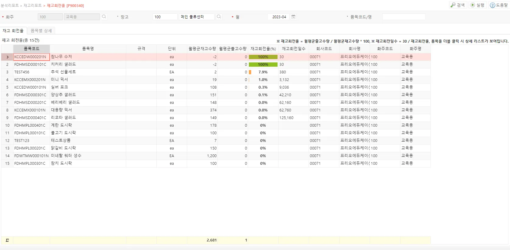 [3] 재고 회전율 (운영리포트 > 재고리포트 > 재고회전율)
