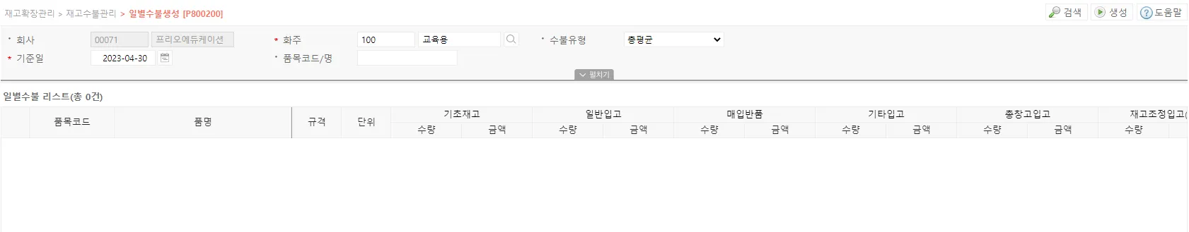 [재고확장관리 > 재고수불관리 > 일별수불생성]